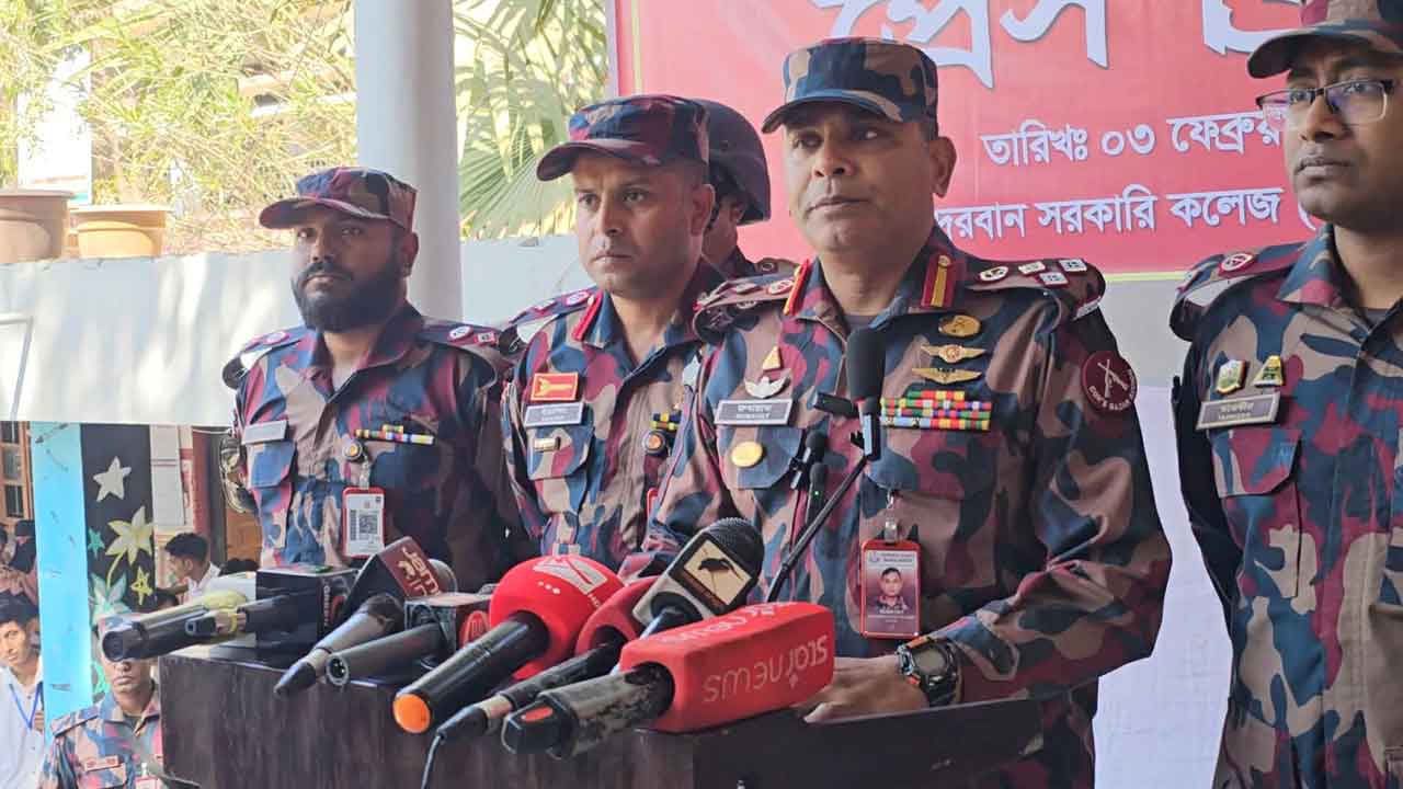 আজ মঙ্গলবার সকালে বান্দরবান সরকারি কলেজে প্রাঙ্গনে আসন্ন এয়োদশ নির্বাচনের প্রেস ব্রিফিংকালে এসব কথা বলেন বান্দরবান সেক্টর কমান্ডার কর্নেল মুহাম্মদ রুবায়াত জামিল।