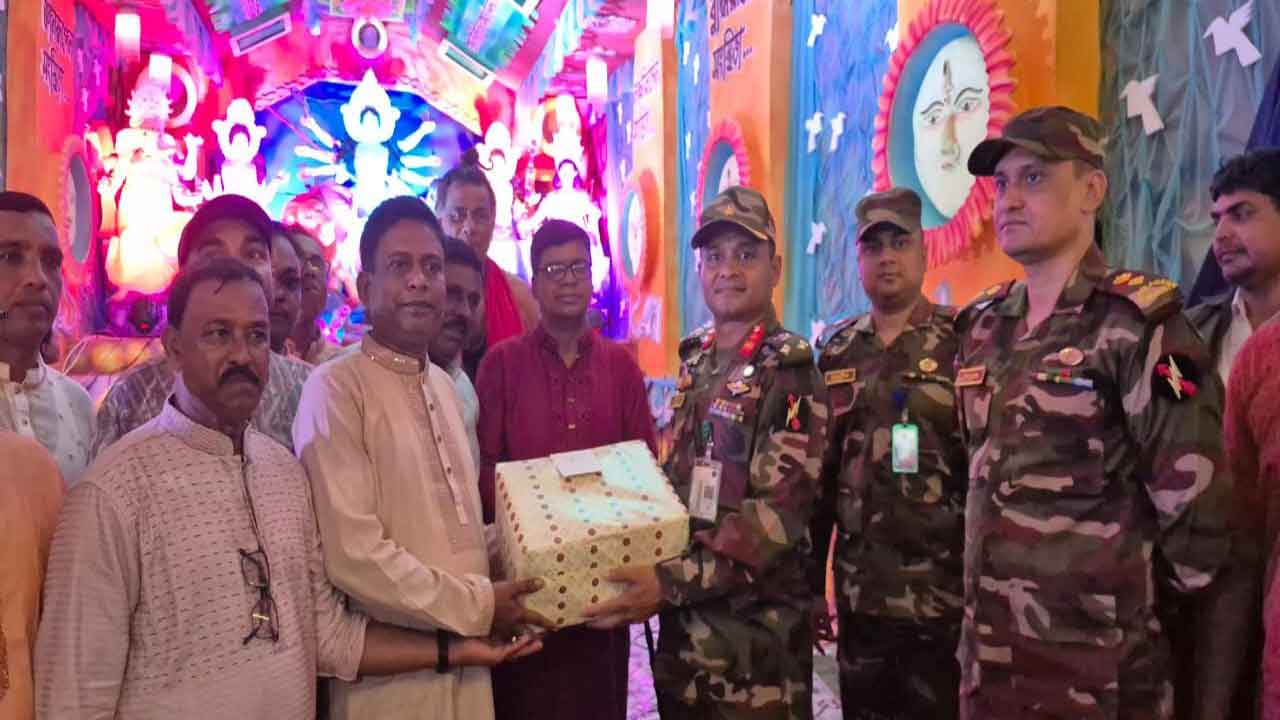 জেলা পূজা উদযাপন পরিষদের সভাপতি অশোক মজুমদার, সাধারণ সম্পাদক টমাল দাশ লিটনসহ স্থানীয় সনাতন ধর্মাবলম্বীরাও এ সময় রিজিয়ন কমান্ডারকে স্বাগত জানান।