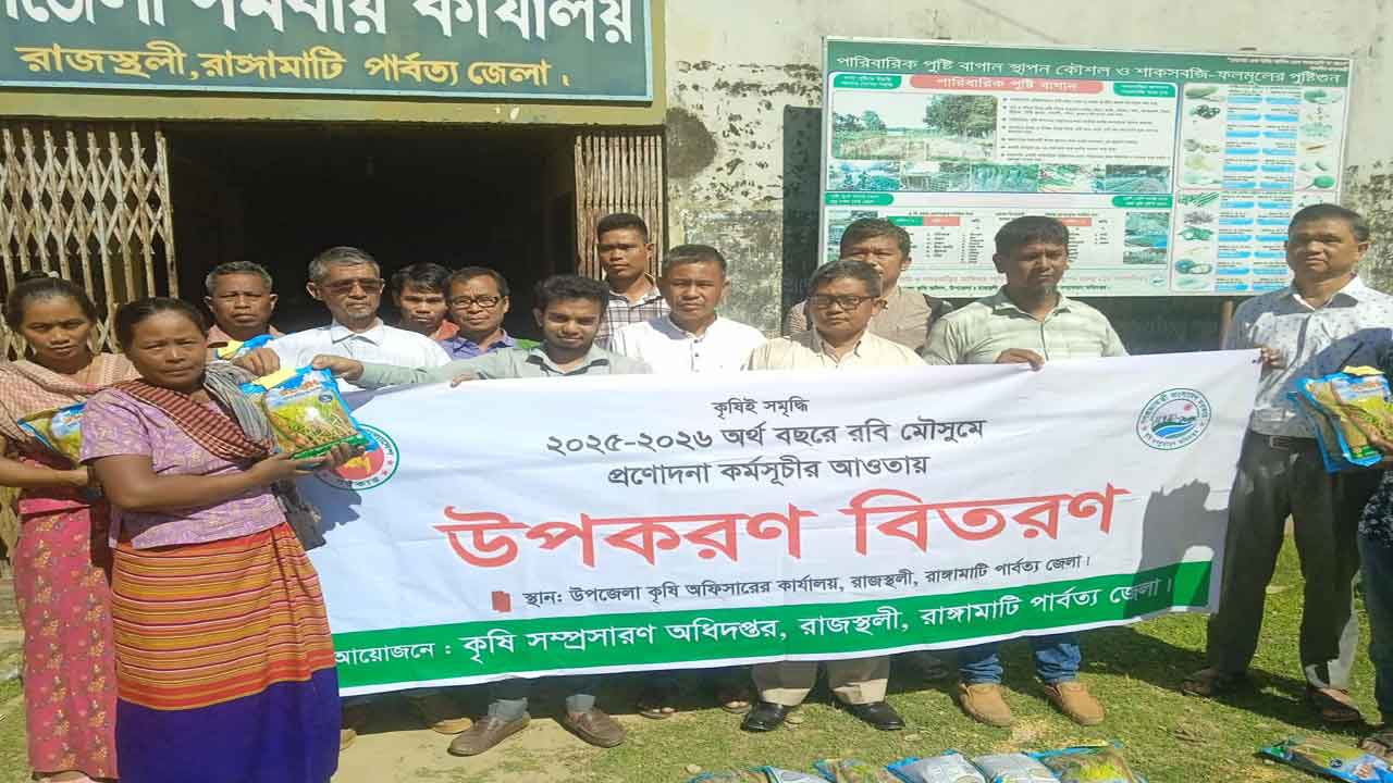 রাঙামাটির রাজস্থলী উপজেলায় ২০২৫–২৬ অর্থবছরের পুনর্বাসন কর্মসূচির আওতায় ক্ষুদ্র ও প্রান্তিক কৃষকদের মাঝে বোরো মৌসুমের হাইব্রিড ধানের বীজ বিতরণ করা হয়েছে।