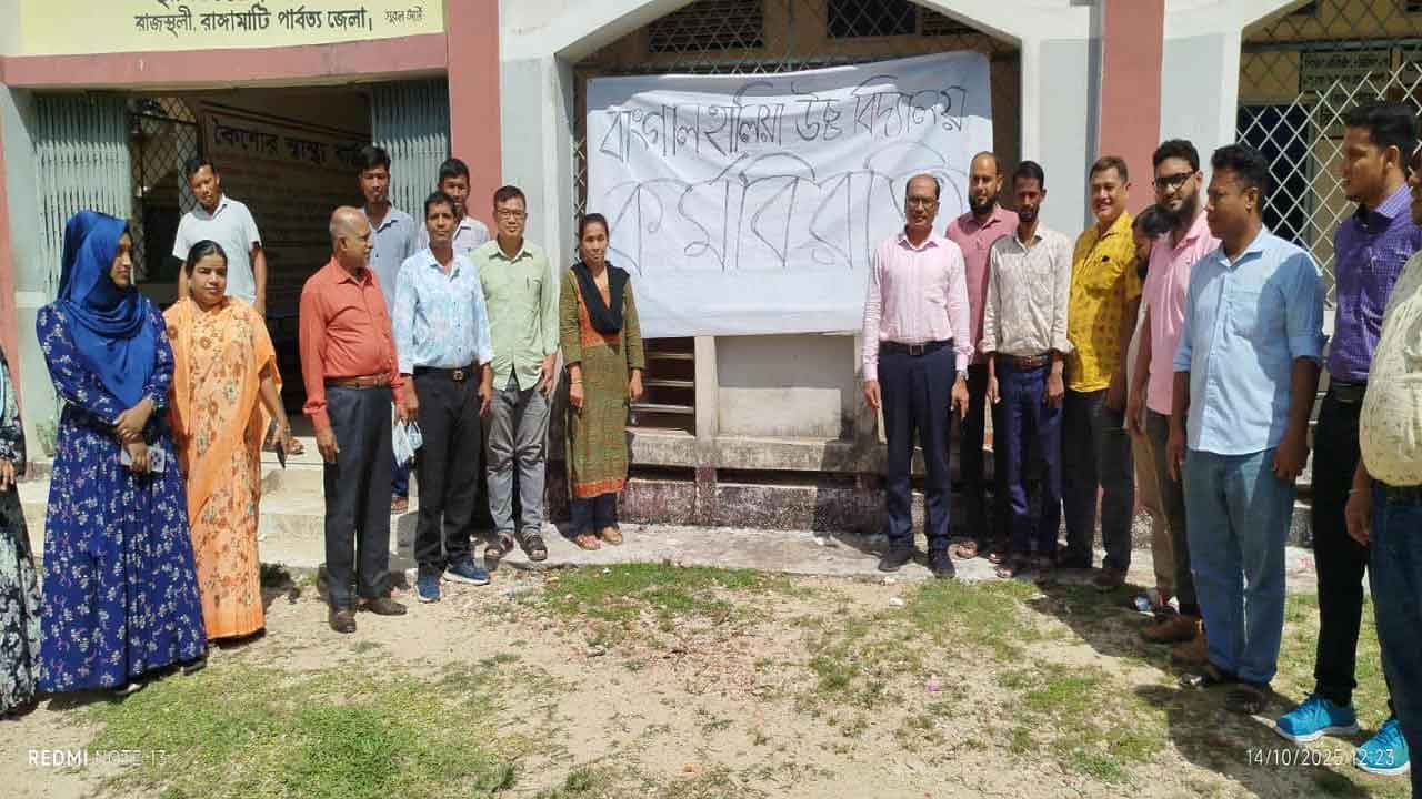কর্মবিরতিতে অংশ নেন বাঙ্গালহালিয়া উচ্চ বিদ্যালয়, রাজস্থলী সরকারি উচ্চ বিদ্যালয়, আসামবস্তী উচ্চ বিদ্যালয়সহ উপজেলার বিভিন্ন শিক্ষা প্রতিষ্ঠানের শিক্ষক ও কর্মচারীরা।